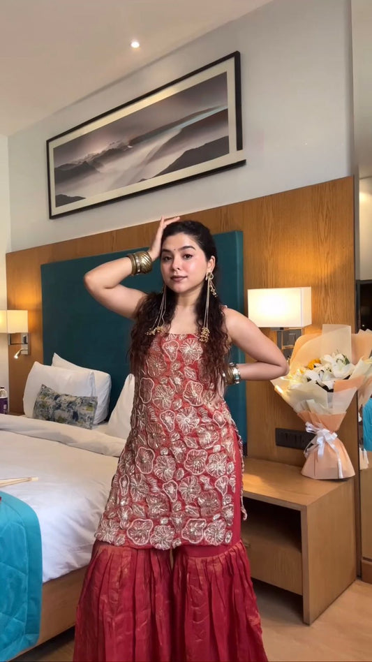WEDDING SPECIAL RED COLOR TOP & PALAZZO